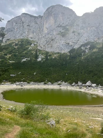 Naš novi cilj bila je kružna staza oko Medjeda (2.300nmv), iako staza ima dobru markaciju i signalizaciju jedna je od najzahtjevnijih možda i najzahtjevnija staza na Durmitoru. Morali smo krenuti pred samu zoru od Crnog jezera, nad kojim se nadvila gusta magla usled toplote i isparvanja. U jednom trenutku sunce je izašlo i osvojilo nebeski svod nama obasjalo put i po inerciji ubrzali smo hod, usput smo naišli na divokoze i nekoliko stranaca koji su bili ponešeni idejom glampinga, mrmljajuci nešto na francuskom zaključili smo da im ta zamisao nije posla za rukom. Mi stižemo do lokacije gdje se put odvaja prema katunu Lokvice, ne dugo počinje uspon na Veliki Medjed južnog vrha, korišćenje sajli je obavezno i neophodno, potrebna je koncentracija, ali i fokus na uzanu stazicu, iako je vidik iz te pozicije spektakularan, važno je koncentrisati se na korak i dah, sve do dolaska na Mali Medjed gdje smo se konačno mogli opustiti i uživati u pogledu od “million dolara”. U blizini je i vidikovac sa kog se najbolje pruža panorama na Crno jezero i šire. Uživali smo u zasluženom odmoru neko u fotografisanju neko u svom vremenu za piknik, a neko u molitvi.. Silazak zahtjeva mišljenja sam još više opreza, jer ima odrona ali čim se spustismo do katuna Lokvice, tu je put tehnički bio mnogo laganiji. Ovo je jedno nezaborano iskustvo, puno ličnih impresija, a intimno naša mala pobjeda.