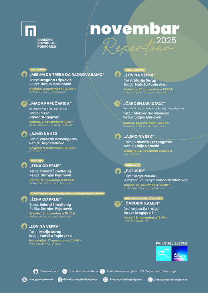 Gradsko pozorište Podgorica – Repertoar za novembar