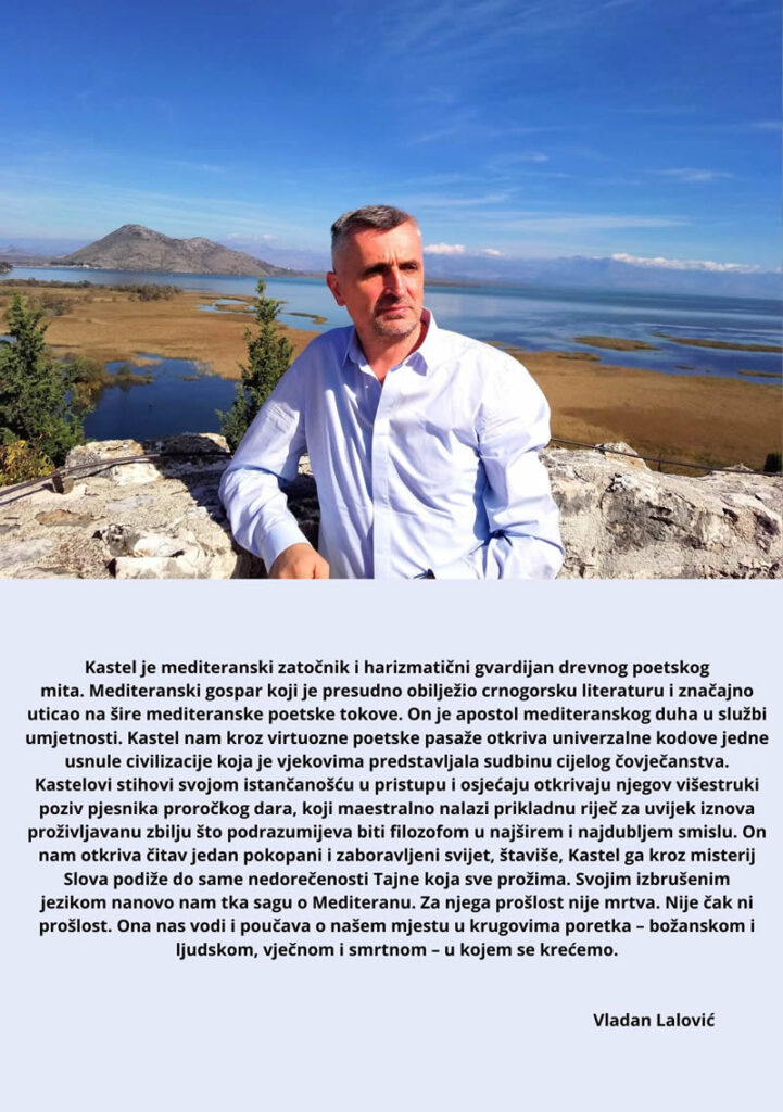 Trideset knjiga poezije i eseja pjesnika, brojni prijevodi i internacionalna priznanja, te dva toma ogleda o Kastelovoj poeziji u crnogorskoj i južnoslavenskoj književnoj kritici – „Mediteranski gospar“ (2008) i „Konzul i juvelir Mediterana“ (2022), dovoljno govore da nema ljepše posvećenosti kolijevci civilizacije i srođenosti sa Mediteranom od poezije. Taj put je trnovit ali spisatelji, poput Kastela, trasirali su ga noktima na zadovoljstvo čitalaca i naših kultura.