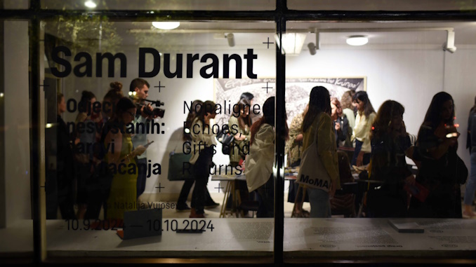Sinoć je u Galeriji MSCUG otvorena izložba renomiranog umjetnika Sam Duranta pod nazivom “Odjeci nesvrstanih: darovi i uzvraćanja”.