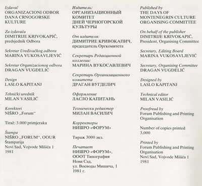 (Текст и рисунки были взяты из книги „Црна Гора“ 1981.г.)