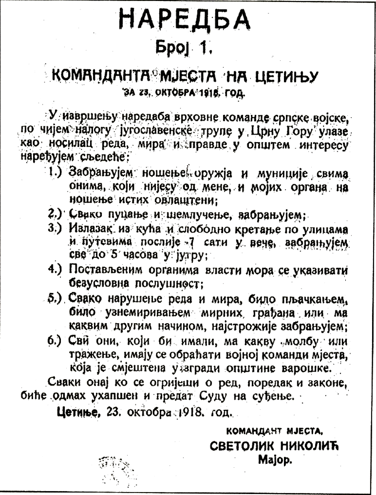 Okupatorova naredba od 23. oktobra 1918. godine